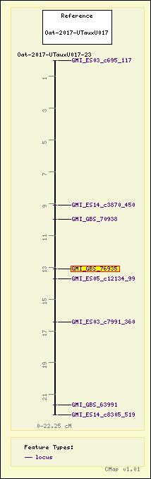 | Oat - Oat-2017-U01BxU006 - Oat-2017-U01BxU006-15 | GMI_GBS_76935 | locus | 21.52 (cM) | Automated name-based | View Maps | |||