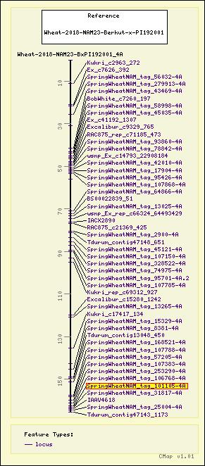 | Wheat ABD - Wheat-2018-NAM26-Berkut-x-PI185715 - Wheat-2018-NAM26-BxPI185715_4A | SpringWheatNAM_tag_6590-4A | locus | 38.6 () | Automated name-based | View Maps | |||